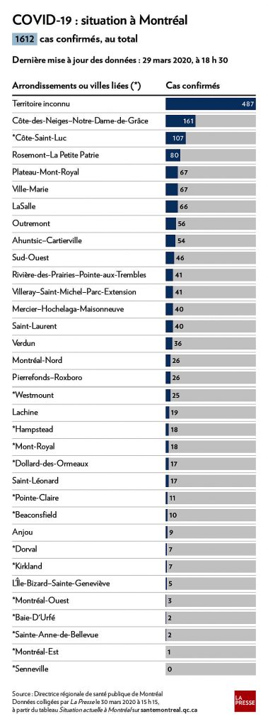 In total, in Montreal se inregistrau ieri 1.612 cazuri confirmate de infectare cu coronavirus.
