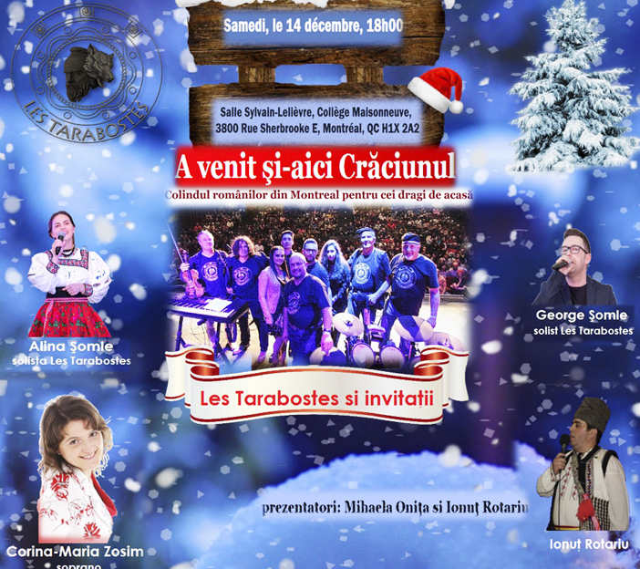 “Va asteptam in numar cat mai mare la acest spectacol al romanilor din Montreal pentru cei dragi de acasa, din Romania. Veniti sa-i colindam cu totii si sa ne umplem sufletele de bucurie si dragoste”, spune Catalin Ghioltan, sufletul trupei infiintate acum 6 ani de romani inimosi si talentati din comunitatea romaneasca din metropola francofona.