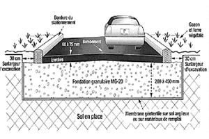 10) exigenta sa nu se formeze nici o balta de apa pe zona asfaltata (cauza poate fi un drenaj deficitar sau denivelarea necorespunzatoare a asfaltului). Eficacitatea drenajului este una din conditile de baza pentru mentinerea unei duratei normale de viata a asfaltatului. In plus, pe durata lucrarilor constructorul trebuie sa pastreze locul relativ curat, iar la sfirsit sa transporte resturile de la excavatie si celelalte reziduri. Modul de punere a fundatiei granulare. In cazul unei intrari noi de asfalt sau al refacerii complete a uneia vechi trebuie excavata toata suprafata ce urmeaza a fi asfaltata si pus un nou rambleu (piatra concasata). Pentru o stabilitate optima, latimea fundatiei de piatra concasata trebuie sa depaseasca cu 30 cm (12 po) fiecare din partile laterale ale intrarii (vezi desenul). Adincimea de excavat trebuie sa fie intre 30 si 45 cm (12 – 18 po) in cazul unui un sol nisipos (care absoarbe apa) si de minim 45 cm in cazul unui sol argilos. In plus, la solul argilos, inaintea asezarii pietrei concasate trebuie sa se instaleze o membrana geotextila, aceasta avind rolul de a opri particulele din sol sa se ridice si sa afecteze stabilitatea rambleului. Daca intrarea asfaltata se realizeaza la o resedinta nou construita trebuie asteptat cel putin 6 luni pentru ca solul sa se taseze in mod natural. Tipul de amestec granular de piatra concasata trebuie sa aiba identificarea metrica MG-20 (piatra concasata intre 0 – 20 mm, respectiv 0 – ¾ po). Daca rambleul este mai profund de 30 cm (12 po), compactarea se face in 2 straturi. Este important sa stiti ca o compactare insuficienta a fundatiei este cauza cea mai frecventa de deformare si fisurare a stratului de asfalt. Panta minima a asfaltului trebuie fie de 2 % (¼ po la 1 picior lungime) pentru a permite scurgerea spre strada si a se evita infiltrarea apei in stratul de rambleu de sub asfalt (prin inghet/dezghet se ridica asfaltul si se fisureaza). Panta minima specificata trebuie realizata inca din faza de excavatie si se mentine la punerea rambleului. Pentru intrari mai largi, cu spatii de parcare de suprafata mai mari, centrul trebuie ridicat fata de borduri pentru a se realiza o drenare eficienta a apei. Este posibil ca intrarea asfaltata sa aiba in lateral borduri prefabricate din blocuri de beton (cum este cazul in desen). Retineti ca este foarte important ca apa de pe asfalt sa se scurga spre canalizare si sa nu se infiltreze in rambleu. Tipuri de asfalt. Materialul destinat pentru asfaltarea unei rezidente este, in general, compus din aproximativ 94% granulate si 6% bitum, denumirea tehnica a produsului fiind EB-10 (Enrobé Bitumineux, granulat 10 mm), iar gradul asfaltului este PG 58-28. In cazul unei parcari de autovehicule grele (camioane, autobuze), asfaltul folosit are granulatie mai mare, o finisare mai putin neteda si culoarea mai putin neagra, gradul fiind PG 64-28. In acest caz, stratul de asfalt trebuie sa aiba grosimea necompactata intre 60 si 75 mm (2,5 – 3 po), iar dupa compactare trebuie sa ramina la o grosime minima de 50 mm (2 po). Specificati in contract ca dupa compactarea stratului de asfalt constructorul sa faca un test de grosime. Retineti ca daca efectuati asfaltarea intr-o perioada rece a anului calitatea lucrarii va fi mai slaba, asfaltul prezentind o finisare poroasa, care in timp permite infiltrarea apei. Ing. LULU MIHAILA Cititi restul articolelor cu sfaturi utile pentru viata in Canada in arhiva sectiunii Sfatul specialistului, rubrica ZigZag Roman-Canadian consacrata de 6 ani de publicatia noastra comunitatii romanilor din Canada!