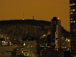 Din peisajul nocturn al Montrealului, o buna bucata de timp Crucea de pe Mont-Royal nu s-a mai distins, in ciuda siluetei sale de 26 de tone. Nu, nu a fost o parere, ci o absenta motivata, pentru ca vechiul simbol religios a fost in cosmetizare de 1,5 milioane dolari! Alaturi de bazil ica Notre-Dame, Crucea de pe Mont-Royal a devenit emblema istorica a orasului Montreal, metropola bogata in secrete istorice si turistice. Crucea a fost ridicata in 1924 pe virful Mont-Royal, aflat intr-o oaza de verdeata, parcul omonim de 190 hectare fiind amenajat inca din anul 1876 de celebrul arhitect peisagist (si ziarist) american Frederick Law Olmsted -cel care a conceput in 1860 si planul faimosului Central Park din New York (lucrari finalizate in 1873). De altfel, in acea epoca Frederick Law Olmsted era cel mai bun arhitect peisagist din intreaga America de Nord. Inaugurarea oficiala a parcului Mont-Royal a avut loc la 24 mai 1876, de ziua de nastere a reginei Victoria. Pentru a sublinia importanta infiintarii acestei mari oaze de verdeata, la ceremonia de inaugurare din virful Mont-Royal au fost trase salve de tun, carora le-au raspuns cele ale militarilor aflati pe insula St.-Hélène. Din 2003, muntele Royal, cu cele trei culmi ale sale, este protejat de guvernul Quebec ca si loc istoric. Actuala cruce din otel -ce masoara 31 m inaltime, are distanta dintre fete de 2,3 m si o deschidere a bratelor de 10 m- este descendenta celei amplasate in acel loc, la 6 ianuarie 1643, de ofiterul francez Paul Chomedey, sieur de Maisonneuve, fondatorul asezarii de pe malul fluviului St-Laurent, actualul Montreal. El si-a tinut astfel promisiunea facuta Sfintei Maria in preajma Craciunului din anul 1642 de a ridica o cruce in virful muntelui, daca fortul Ville-Marie (construit de doar citeva luni) este protejat de revarsarile fluviului ale caror ape involburate provocasera inundatii cumplite. Paul Chomedey (a carui statuie se afla in fata bazilicii Notre-Dame) a dus crucea de lemn pe umerii sai pina in virful Mont-Royal, la 250 de m fata de nivelul fluviului St.Laurent. Acest moment este de altfel reprezentat pe cel de al doilea vitraliu de linga altarul bazilicii Notre-Dame. In 1874, pentru a celebra 40 de ani de la infiintare, Fundatia Societatii Sf. Ioan Botezatorul (Société Saint-Jean Baptise) a propus amplasarea in acelasi loc a unei cruci din otel, in amintirea celei din lemn ridicata cu peste 200 de ani inainte de Paul Chomedey. Insa proiectul s-a realizat abia 50 de ani mai tirziu cind, la initiativa unui comitet ad-hoc, 104.200 de benevoli (din care 100.000 elevi) au demarat actiunea de stingere de fonduri prin vinzarea de timbre ce infatisau imaginea pe care arhitectii vremii o concepusera viitoarei Cruci de pe Mont-Royal. Pretul unui timbru era de 5 centi, iar suma adunata s-a ridicat la 10.000 dolari. O valoare semnificativa in acele timpuri! La 16 mai 1924 au demarat lucrarile, constructiaprimind binecuvintarea din partea monsenioruluiAlphonse-E. Deschamps, iar proiectul initial a fost completat in luna septembrie cu planurile preotului Pierre Dupaigne din Ordinul Sulpicienilor. Inaugurarea crucii de otel poleita de lumina becurilor albe a avut loc la 24 decembrie 1924, in ajunul Craciunului, pentru a aduce aminte de salvarea fortului Ville-Marie de inundatiile din 1642. In prima faza, iluminatul era asigurat de 240 de becuri de 75 de watt (cite 120 de fiecare fatada), cei 18 KW necesari alimentarii electrice fiind furnizati gratuit de compania Montreal Light, Heat and Power. Sistemul de electrificare a fost modificat intr-o prima etapa in 1959, cind s-au instalat 249 de becuri, si ulterior in 1992, cind s-a montat un sistem de sute de fibre optice prin care 32 de proiectoare dirijau lumina spre fibre formind o iluzie optica asemanatoare iluminatului cu becuri. In dorinta de a marca diferite evenimente importante, in timp s-a decis o simbolistica a culorilor, fata de lumina alba ce irizeaza in mod obisnuit Crucea de pe Mont-Royal: * 1936 violet, la decesul regelui Angliei George al V-lea; * 1958 violet, decesul Papei Pius al XII-lea; * 1960 galben, celebrarea Grande Mission eveniment organizat de Dioceza Montreal; * 1975 albastru, cu ocazia sarbatorii nationale a provinciei Quebec, St. Jean-Baptiste; * 1978 violet, decesul Papei Paul al VI-lea; * 1978 violet, decesul Papei Ioan Paul I; * in anii 1980 rosu, cu ocazia unui mars de lupta impotriva SIDA; * 2005 violet, decesul Papei Ioan Paul al II-lea. Pina la instalarea sistemului de iluminat cu fibre optice, schimbarea culorii se realiza prin inlocuirea manuala a becurilor albe cu cele colorate, operatie care necesita mai multe ore. Ulterior, sistemul cu fibre optice schimba culorile cu ajutorul unor filtre plasate in fata fiecaruia din cele 32 de proiectoare. Proprietate a Societatii Saint-Jean Baptise, in 1929 Crucea de pe Mont-Royal a fost daruita municipalitatii Montreal, insa documentele acestei donatii s-au pierdut si abia in 2004 actul de cesiune a fost inregistrat oficial de primarie. In cei 85 de ani de existenta a Crucii din otel, lumina a fost stinsa doar de doua ori: in timpul crizei de polei inceputa in 5 ianuarie 1998 si recent, cind la 19 septembrie 2008 au demarat lucrarile de renovare. De precizat ca in timpul celui de Al Doilea Razboi Mondial Crucea a ramas luminata pe o singura fata, pentru a se realiza economii de energie. Lucrarile de renovare finalizate pe data de 4 februarie 2009 au vizat refacerea si revopsirea structurii metalice ce se afla intr-o stare de coroziune avansata, ce incepuse sa puna in pericol securitatea constructiei, precum si schimbarea sistemului de iluminat cu unul performant din punct de vedere energetic. In locul fibrelor optice s-au montat diode electroluminiscente policromatice, al caror consum nu depaseste 4 KW. Comparativ cu primele doua sisteme de iluminat, cel inaugurat la 4 februarie 2009 prezinta o serie de avantaje energetice si de intretinere: – puterea electrica consumata s-a redus la 3,9 K