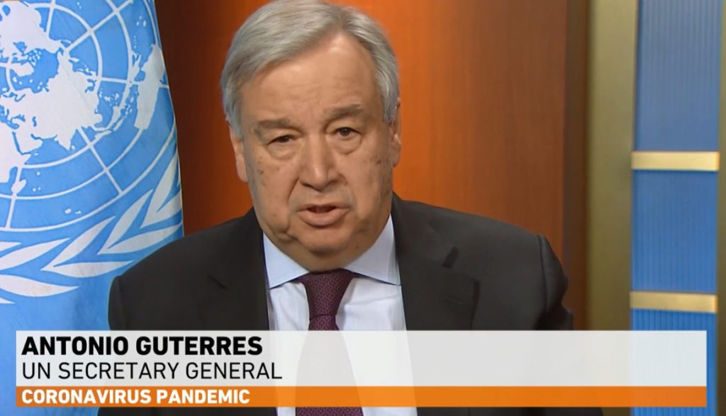 Aceasta evolutie este insotita si de riscuri, spune el, remarcandu-l in special pe acela ca “aceasta boala sa creeze mecanisme de control ale societatii care sa poata ajuta dictaturile, ceea ce desigur va trebui sa reusim sa evitam in viitor”, spune el in interviul citat de Agerpres. Ca probabil unic element pozitiv al actualelor masuri de izolare si de reducere a activitatii economice Guterres a remarcat scaderea emisiilor de gaze cu efect de sera, notand insa ca nu virusul este cel care va rezolva problema poluarii, ci o dezvoltare sustenabila care sa tina cont de tintele fixate in materie de schimbari climatice.
