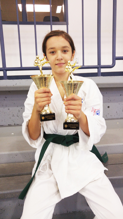 Desi detine centura verde doar de citeva luni, Flavia-Maria Goga, eleva a Colegiului Stanislas, a urcat de doua ori pe podiumul competitiei de karate juniori, stil Kyokushinkai, desfasurata recent si la care au participat sportivi din 6 colegii din regiunea Montreal.