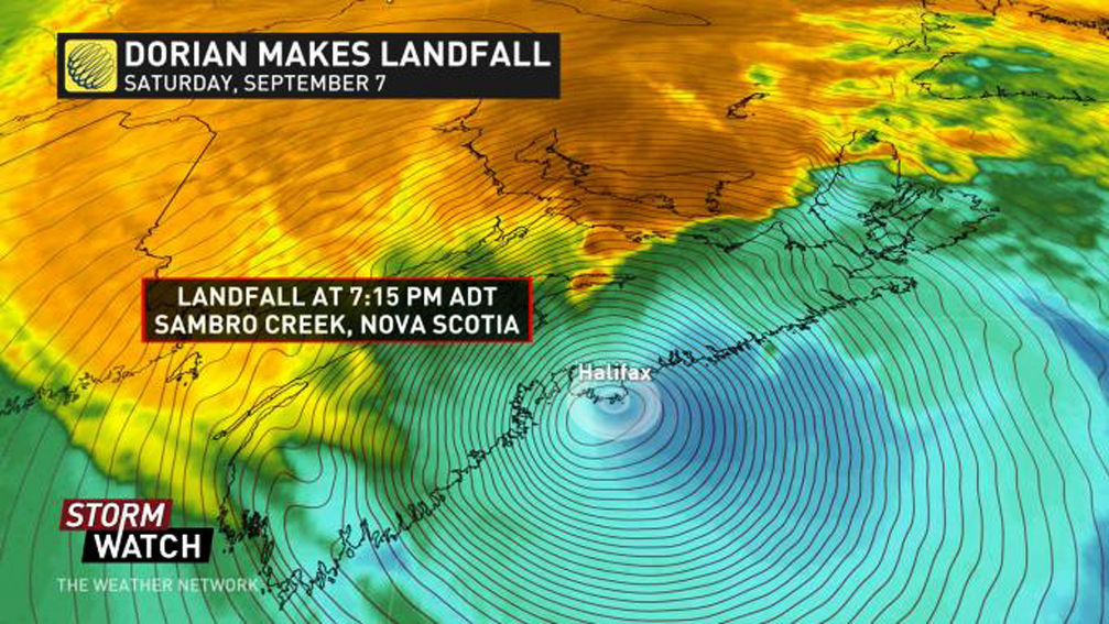 In aceasta dup-amiaza, o parte din Canada Atlantica a fost lovita de vanturi intre 90 si 120 km/h, la circa 10 km distanta de orasul Halifax fiind inregistrate chiar rafale in care viteza vantului a ajuns la 141 km/h.