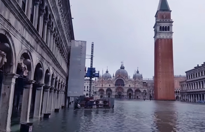Cel mai mare val de inundatii din ultimii 50 de ani in orasul-laguna: nivelul apei a urcat cu 1,87 m in 80% din oras, cu putin sub recordul istoric de 1,96 m inregistrat in 1966. VEZI VIDEO LA FINALUL ARTICOLULUI!