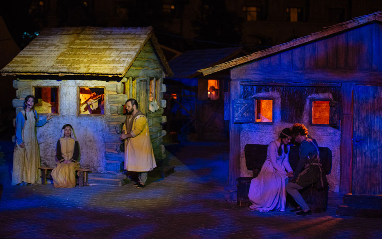 Satul medieval construit in marime naturala pentru acest eveniment a evocat, in cele mai mici detalii, fascinanta lume de acum sase veacuri. Noua case, opt turnuri de aparare, patru ateliere de mestesugari, un han si o biserica (interpretare dupa biserica San Nicoara, Curtea de Arges), sute de costume si masti populare, zeci de muzicieni (instrumentisti, cor si ansamblu arhaic), alaturi de sateni, strajeri, calareti, mestesugari (olari, pielari, pictori, sculptori in lemn si tesatoare) au reconstituit atmosfera lumii romanesti medievale, precizeaza organizatorii.