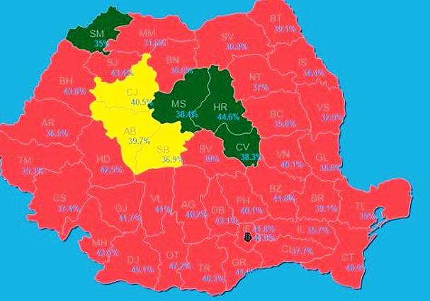 – PSD a cistigat aproape peste tot, inclusiv in Bucuresti si Transilvania. Sau, altfel spus, PNL se apropie de 40% DOAR in Sibiu si Alba, iar PSD a obtinut peste 50 % in 20 de judete.